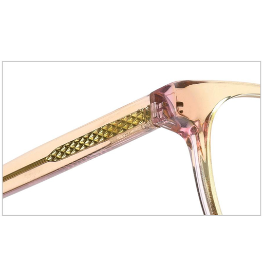 Notice the intricate detailing on the temples: a textured gold accent brings an elegant touch, while the precision – engineered metal hinges guarantee smooth operation and long – lasting performance — hallmarks of durable optical eyewear. The temples are ergonomically designed to curve gently behind the ears, offering a secure yet cozy fit that embodies comfortable temple glasses.